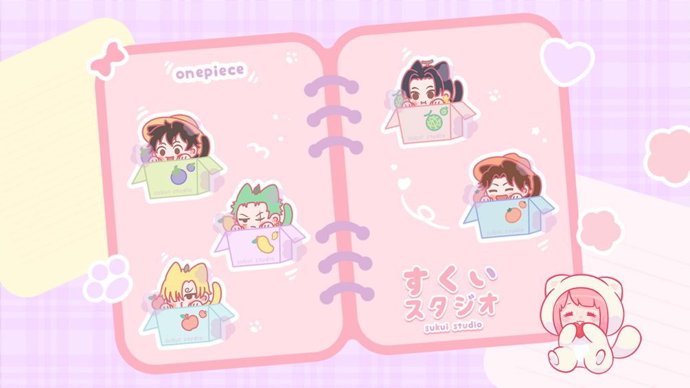 One Piece Chibi Food Delivery Stickers | Sukui Studio| Anime, Kawai, Chibi, Base, Brush, Free